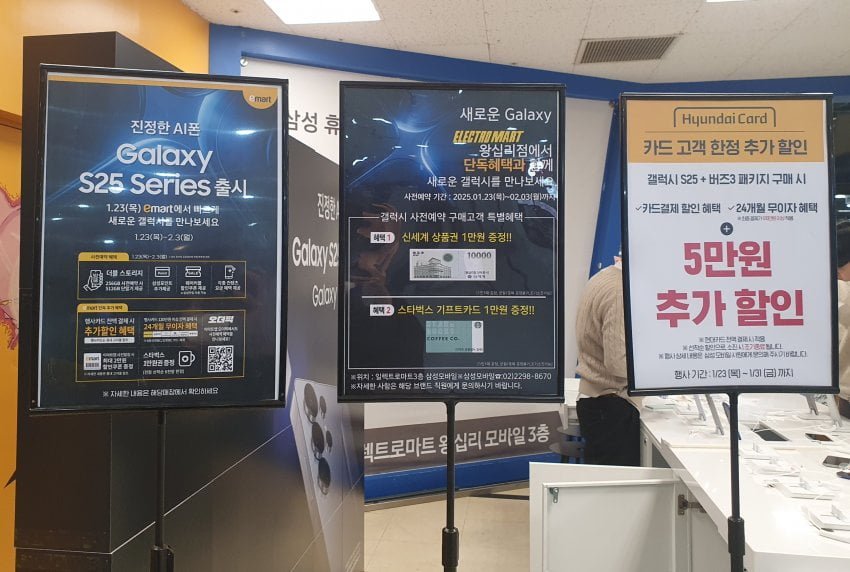 - 갤럭시 S25 + 버즈3 패키지 구매시 <카드결제 할인혜택, 24개월 무이자 혜택> + 5만원 추가 할인